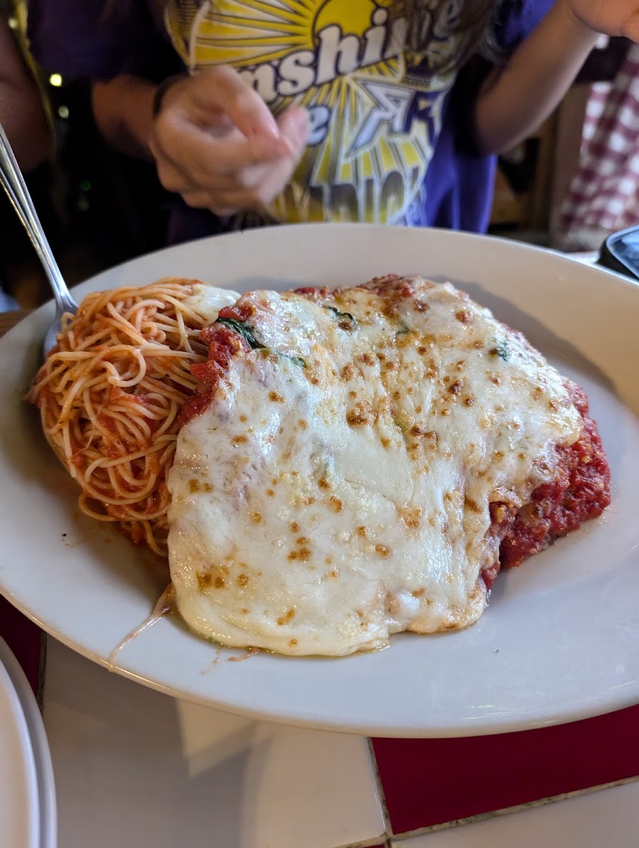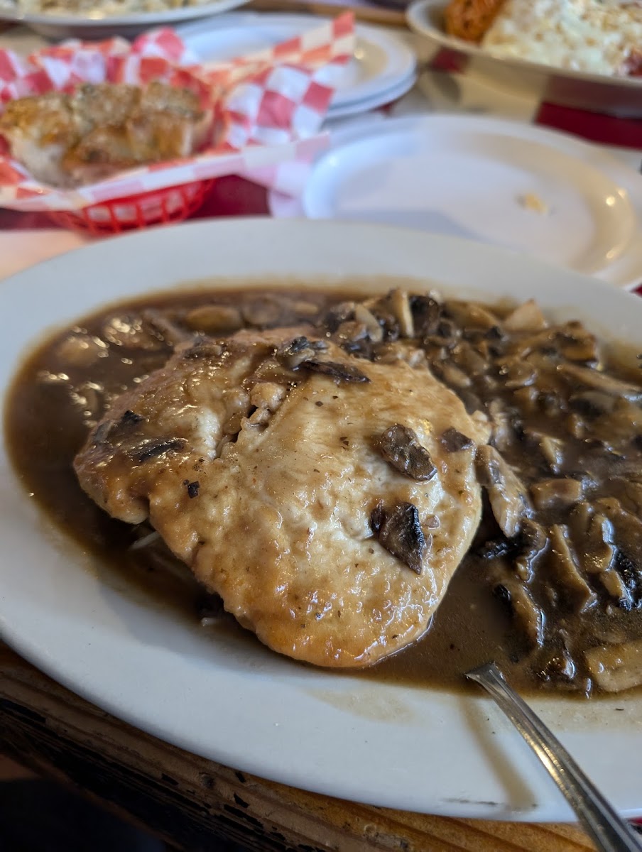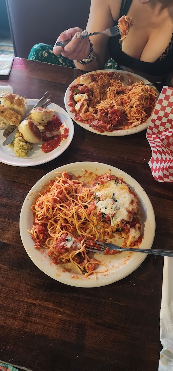 The food was great and very plentiful. Service was also fantastic. It's a noisy place which bothers me but may not be an issue for you especially if you like the bar or sports environments. The half antipasto salad was very plentiful, fresh and delicious. The dressing was amazing. Also the Chicken Martini with peas and asparagus was very good. We enjoyed our meals. The portions were so plentiful I had to ask our server if dish ordering was family style and I missed the memo. He said no but agreed that wouldn't be a bad way to go. It worked out well since my wife and I shared both plates and still took food home.